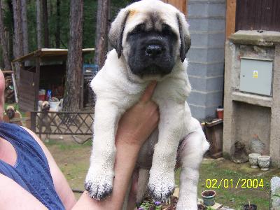 O plemeni:Anglický mastif je impozantní,mírumilovné,ostražité a vám naslouchající plemeno.Jeho laskavé a vám neustále otevřené srdce tohoto obra vás po několika málo prožitých dní pohltí.Není to tvor k výcvikům,jeho inteligence je daná a vrozená.Přes jeho velikost není spotřeba krmení nijak finančně katastrofická(daleko více je člověk ochoten platit za nikotin).Na pohyb není vůbec náročný,pstačí krátké a časté vycházky.Věřím,že pokud vyzkoušíte,zamilujete se.