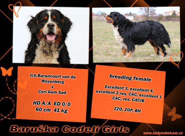 O nás:Jsme malá rodinná chovatelská stanice. Zakladatelkou CHS je naše fena Baruška Codeli Girls. Při výběru vhodného krycího psa koukáme hlavně na zdraví a typickou povahu plemene. Štěňátka budou vyrůstat v domácím prostředí, plně socializovaná. S budoucími majiteli našich štěňátek budeme chtít být trvale v kontaktu a rádi poradíme, co bude třeba.