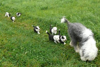 O plemeni:Pocházím ze starého anglického pracovního plemene, jehož historie Vás zavede až do roku 1586. První volně přeložený popis člověkem znamená asi tolik:: „ Ovčácký pes, není tak rychlý a obratný jako chrt, ale nemůže být ani tak těžký ( tlustý) jako pes domácí, musí však být silný, aby odehnal vlka i jiná divoká zvířata a vytrvalý, aby mohl pronásledovat třeba i zloděje.“Lidé si nás představují jako veliké chlupaté psy, pohybem připomínající medvěda a tvrdí, že při pohledu na nás nevědí kde máme začátek a kde konec. Samotný název Bobtail znamená v překladu „ bezocasost – pahýlovitý ocas.“ V současnosti jsou naše štěňátka s