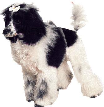 Vícebarevný pudl -Herlekin-černobílý. Je milé a veselé povahy,jako všichni pudlové,hodí se do bytu,nepoští chlupy,musí se česat a stříhat.