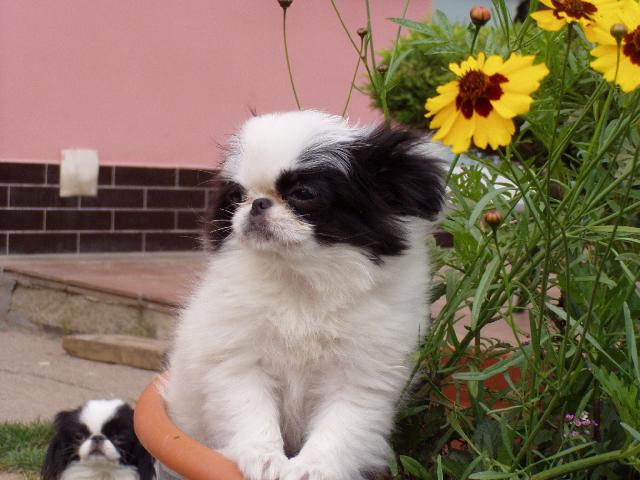 O plemeni:Tento malinký pejsek je v Japonsku znám již více než 1400 let, ale jeho kořeny v Číně zasahují jistě mnohem hlouběji. Japonci si po staletí vytvářeli originální kulturu, která se hodí pouze pod posvátnou horu Fudžisan a na ostrovy kolem ní. Podle jedné staré pověsti zavítali jeho předkové do říše Vycházejícího slunce někdy v 8. století. Jako dar čínského císaře se tam prý dostali přes Koreu. Tenkrát se ještě velmi podobali svému příbuznému pekinézovi. Vysokou společnost zaujali natolik, že jim připravila ráj na zemi. Sytili je nejlepšími pokrmy a obkládali hedvábnými poduškami. Brzy byli vyšlechtěni stále menší a menší jedinci, a velmi se dbalo na to, aby byli mezi sebou pářeni pouze psíci z jednoho paláce. Tato silně příbuzenská plemenitba vedla přes mnoho generací ke stále menším a křehčím pejskům, až vyloženě k "drahocennostem". Dámy této společnosti je nosily v rukávech svých kimon nebo je chovaly v bambusových klíckách, jako vzácné a okrasné ptactvo. Dostávali se také do chrámů, kde jim bylo zvlášť nakloněno božstvo. Malý psík byl zobrazován na mnoha vázách, drahých předmětech i obrazech. Stal se hrdinou mnoha japonských bájí a pověstí.