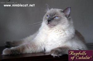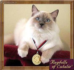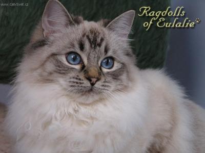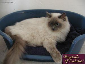 Ragdoll je velká a silná polodlouhosrstá kočka s fantasticky modrýma očima. Má velmi mírnou a klidnou povahu. Je velmi společenská, mazlivá a vysloveně závislá na člověku.
