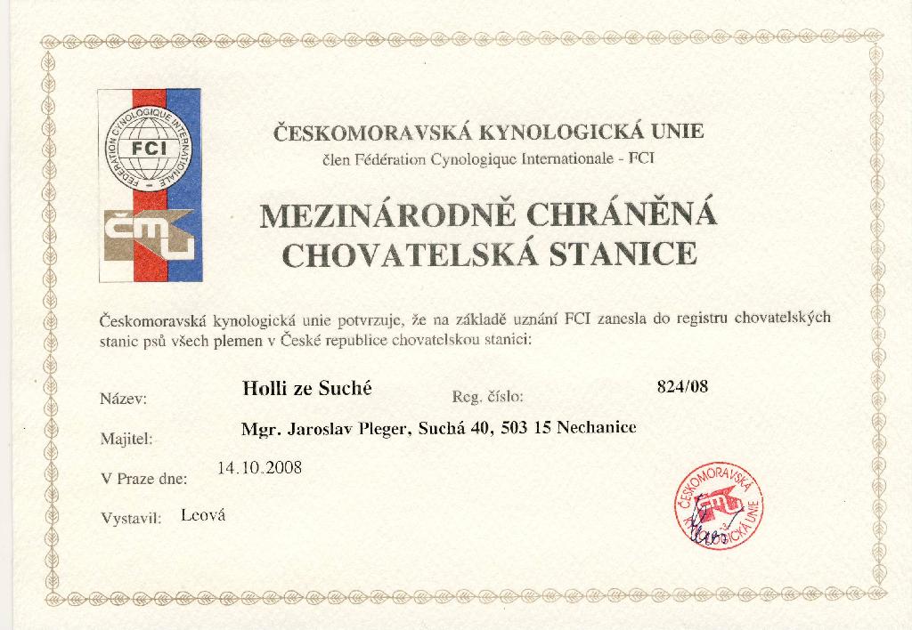 Reg. číslo CHS: 824/08 Certifikát CHS:Zobrazit Certifikát ::: Plánujeme vrh: 30.09.2015 Hodnocení: 100 bodů ze 100