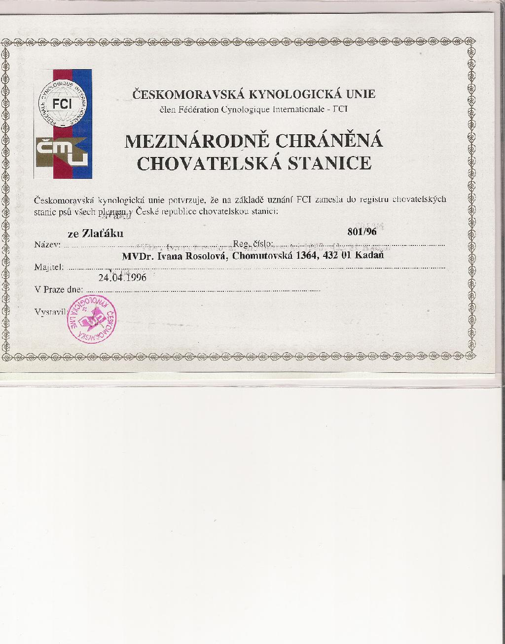 Reg. číslo CHS: 801/96 Certifikát CHS:Zobrazit Certifikát ::: Plánujeme vrh: 15.06.2010 Hodnocení: 80 bodů ze 100