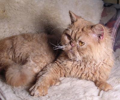 Česká kadeřavá kočka - bohemian rex - je vlastně perská kočka se zkadeřenou srstí.Byl u ní jeden z genů ovlivňujících kvalitu srsti