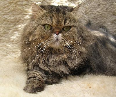 O plemeni:Chovám perské kočky různých barevných variet, ale hlavně se snažím o chov perských, černých, zlatě mramorovaných. Toto divoké vybarvení mě uchvátilo, ale není jednoduché vyšlechtit u perských koček výraznou kresbu na pěkném zlatém podkladě, sytě zelené oči a při tom zachovat dobrý perský typ.