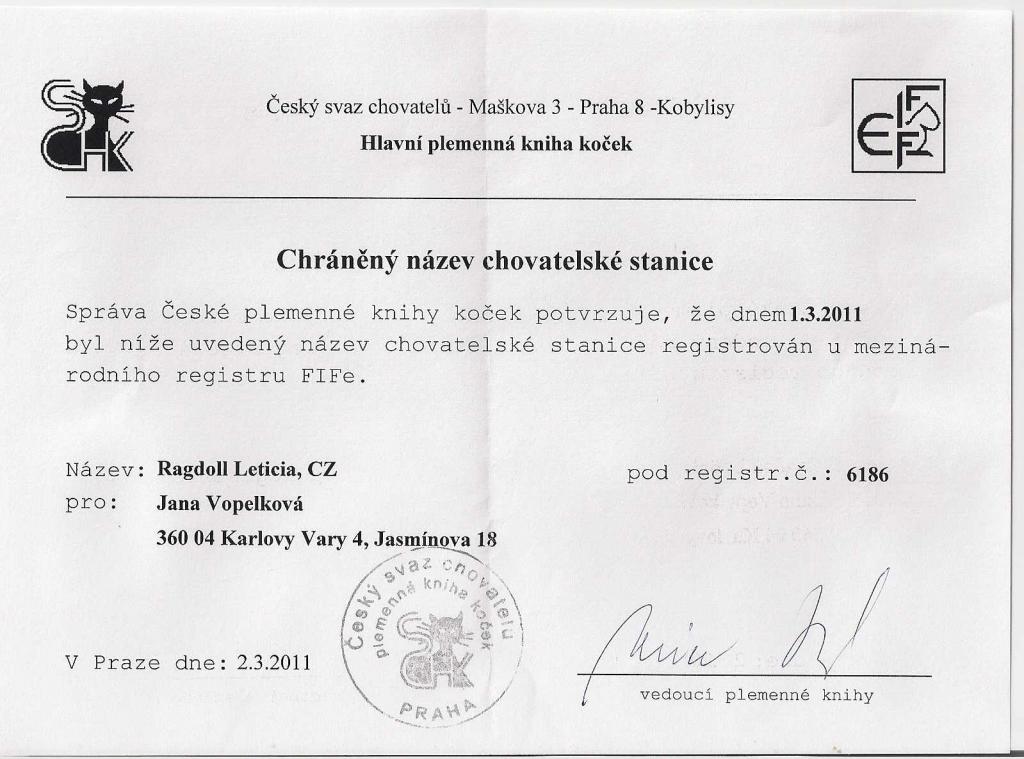 Adresa: Jasmínová 18, Karlovy Vary 360 04 Zodpovědná osoba: Jana Vopelková www: www.ragdoll-leticia.cz Mail: | Reg. číslo CHS: 6186 Certifikát CHS: Zobrazit Certifikát ::: Plánujeme vrh: 20.04.2012 Hodnocení: 80 bodů ze 100 |