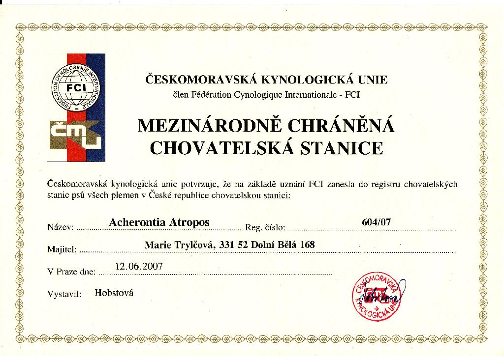 Reg. číslo CHS: 604/07 Certifikát CHS:Zobrazit Certifikát ::: Plánujeme vrh: 20.04.2011 Hodnocení: 100 bodů ze 100