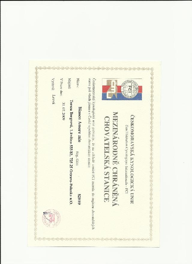 Adresa: 1. května 555/83, Ostrava- Polanka nad Odrou 72525 Telefon: +420736255654 Zodpovědná osoba: Tereza Bergrová www: www.biancoamoremio.wbs.cz Mail: | Reg. číslo CHS: 829/09 Certifikát CHS: Zobrazit Certifikát ::: Plánujeme vrh: 20.06.2011 Hodnocení: 86 bodů ze 100 |