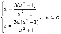 Kvůli tomu, že "u" se nemůže rovnat "-1", jsem nakreslil křivky po částech (pro "u" od -20 do -1,3 a pro "u" od -0,7 do 20). Při "u" jdoucí k nekonečnu, funkce jde k 0