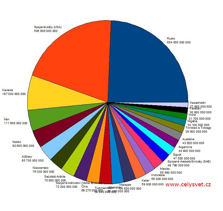 3.Spojené státy (USA) :::545 900 000 000 m3Vývoj :