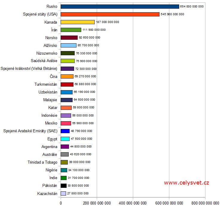 Graf 1: Zemní plyn - výroba. Pořadí států